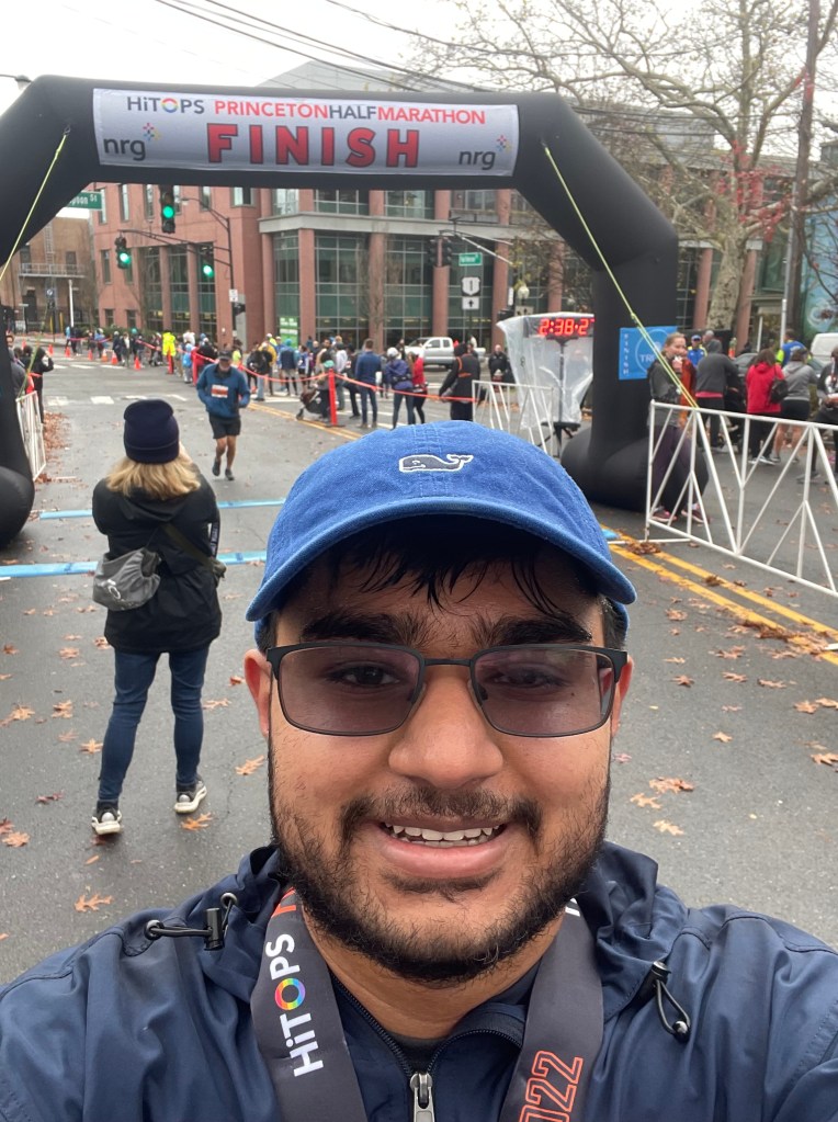 Throughout my life, I have experienced endless highs and lows. I have some proud moments that I try to cherish and remember forever and some that I try to forget from the unpleasantness. One particular moment that happened recently, which I am proud of and hope never to forget, is fully running the half-marathon across Princeton University last November. Achieving the medal for completing the Princeton half-marathon was an extraordinary moment since it taught me three important lessons. Looking back, I see the accomplishment of running my half-marathon as a process split into three parts. Part one of the process focused on the hard work and preparation for the race. Part two was about keeping an optimistic attitude throughout the race. Part three was about perseverance to complete the race, even when it became difficult to keep going. With these three processes, finishing the race was much easier.